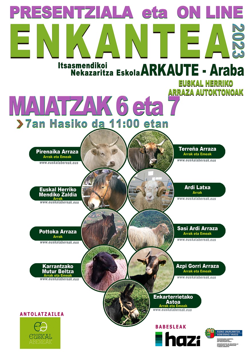 Deskribapena:Edizio honetako Enkante Ofizialean, abelgorriak, ahuntzak, ardiak eta zaldiak parte hartuko dute Arkauteko Itsasmendikoi Nekazaritza Eskolan (Gasteiz).