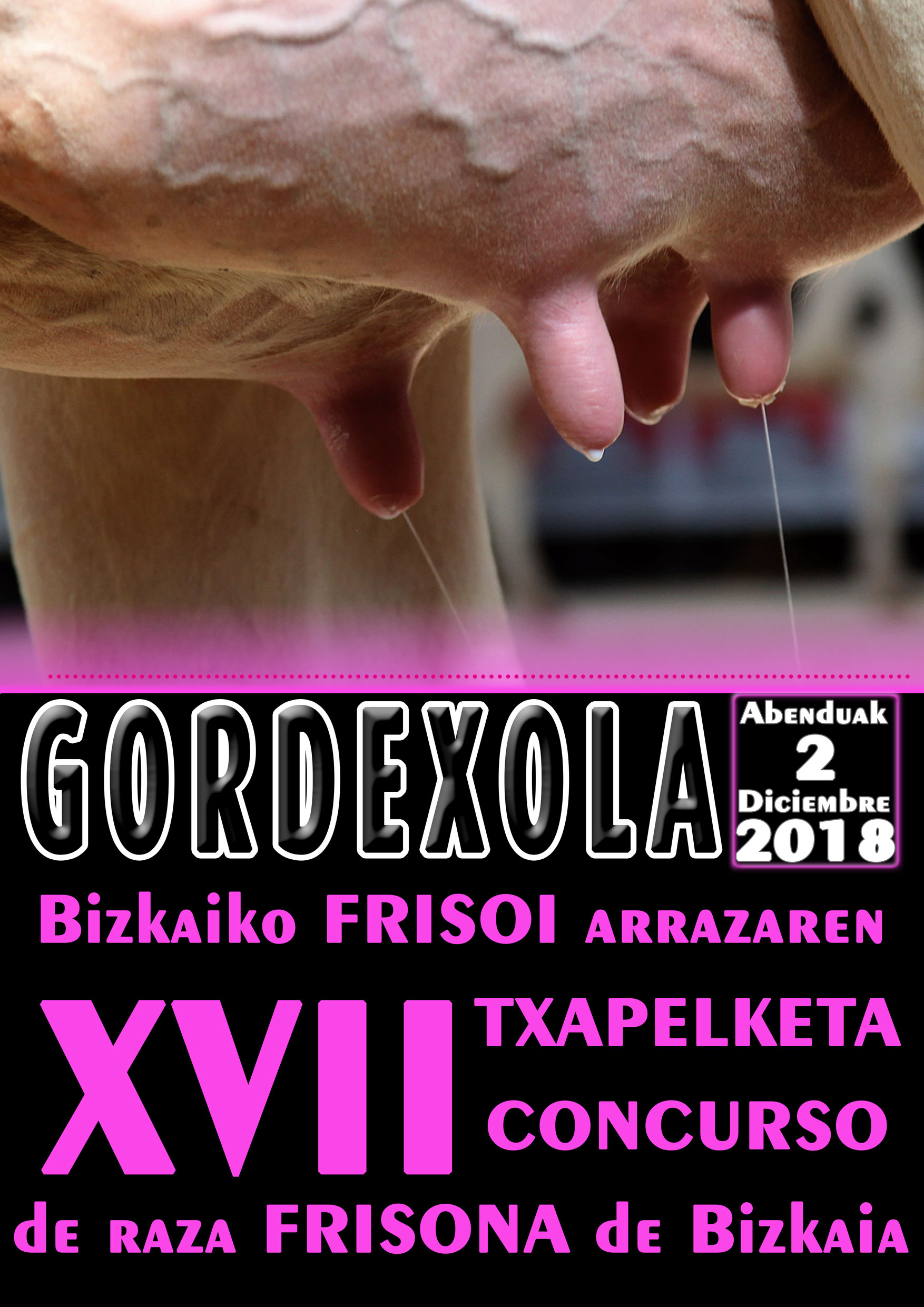 Deskribapena: Datorren abenduaren 2an, Gordexolako nekazal azokaren barnean, Andres Deuna eta Inmakulada jaia dela eta, udaletxeak ekitaldi hau antolatzen du. Gordexolan Bizkaiko Frisoi arrazaren XVII. Txapelketa ospatuko da, Bizkaiko eta Gipuzkoako abeltzainen partaidetzarekin.