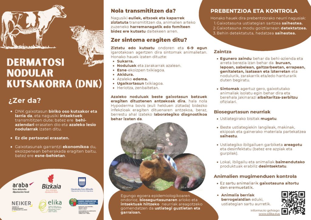 EAEri dagokionez, Dermatosi Nodular Kutsakorraren (DNC) aurkako txertaketa prebentiboko kanpaina bat hasiko da Gipuzkoan. Hiru Foru Aldundien eta Eusko Jaurlaritzaren asmoa txertoa EAE osoan jartzea bazen ere, MAPAk mugatu egin du EAEko erakundeek proposatutako txertaketa-eremua, eta, oraingoz, Gipuzkoan bakarrik jarri ahal izango da txertoa. Gaixotasunaren bilakaeraren arabera, etorkizunean zabaldu ahal izango da txertaketa-eremu hori.