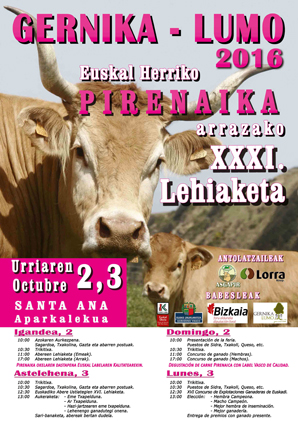 Deskribapena: Urriaren 2an eta 3an, Abere Piriniotarren Euskal Herriko XXXI Lehiaketa egingo da.