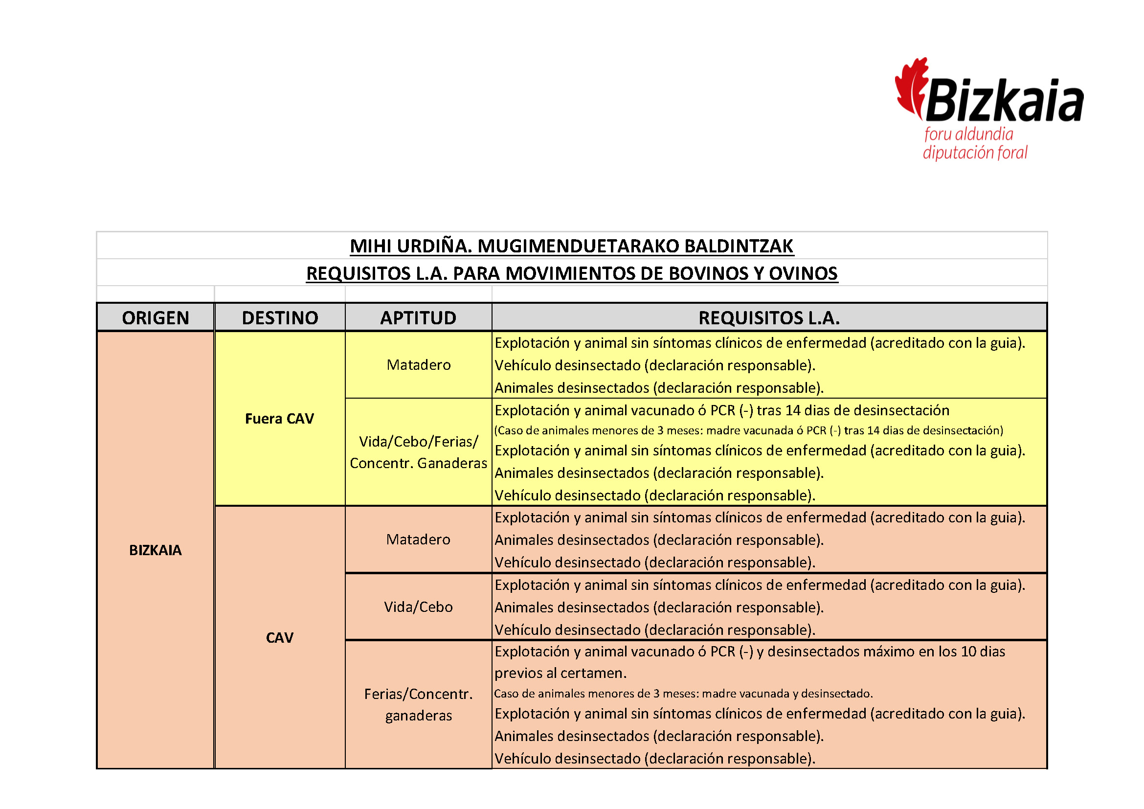 MIHI URDINA 8-Saren egoera berria dela eta, Bizkaiko Foru Aldundiak abeltzaintzaren mugimenduari eta txertaketei buruz ezarritako protokoloa eransten da.