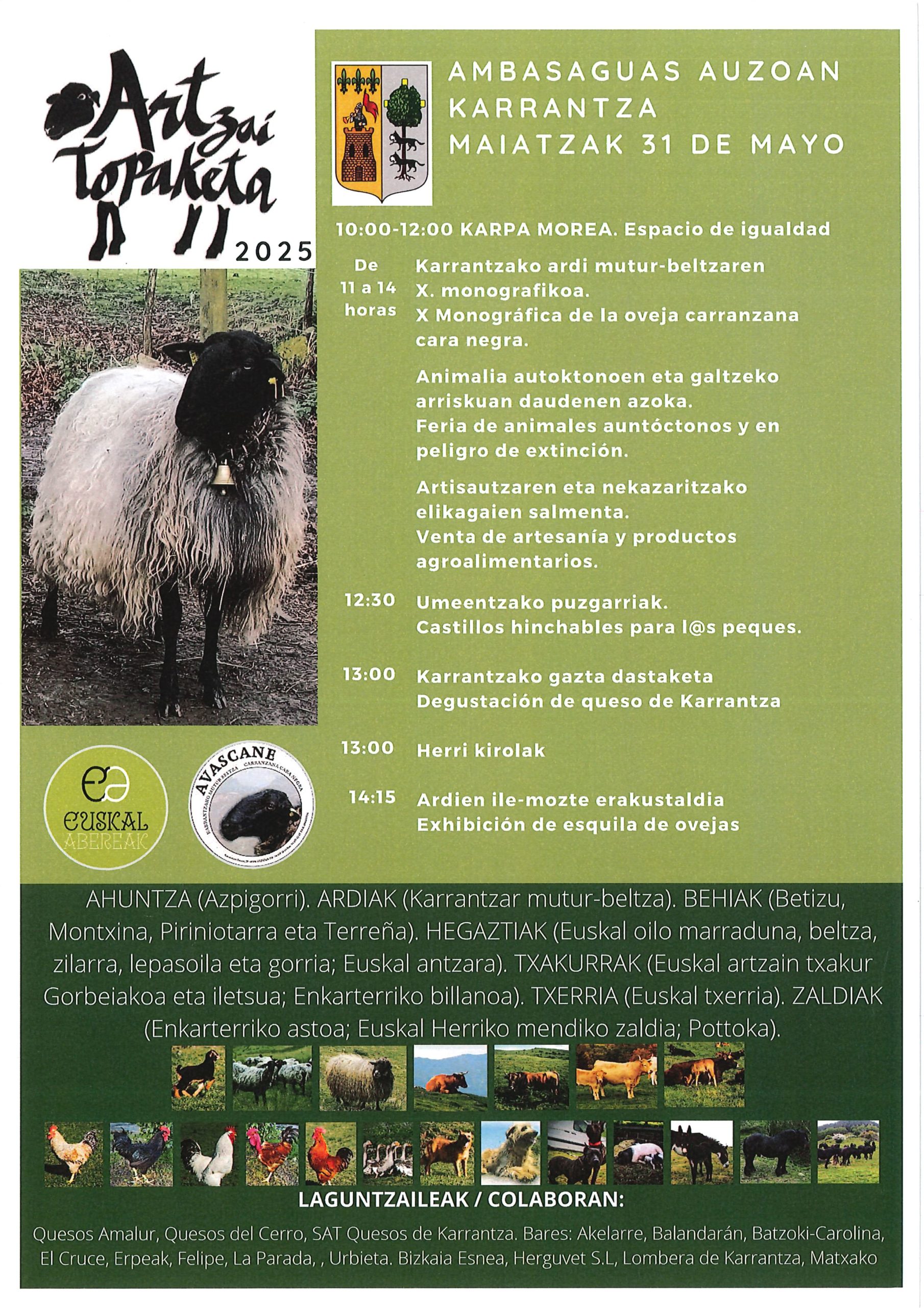 Deskribapena: Datorren Maiatzaren 31an, Karrantza udalerriko Ambasaguaz auzoan, Karrantzako Ardi Mutur Beltzaren X. Monografikoa eta Galzorian dauden Euskal Abereen azoka ospatuko da.