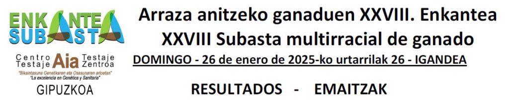 Enkantearen preziorik altuena 7.300€eko limusin RJ arrazako zekor bat Bizkaiko abeltzain bati esleitutako. RJ eta RP animalien batez besteko esleipen-prezioa 4.678€-koa izan zen, 3.300€-ko prezioan. Eta haragien batez besteko prezioa 3.931€-koa izan zen, eta irteera-prezioa 2.600€-koa.
