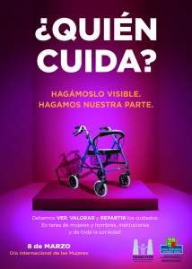 El lema de la campaña del 8 de marzo es “¿Quién cuida? Hagámoslo visible. Hagamos nuestra parte” e insta a visibilizar, valorar y repartir las tareas de cuidado entre mujeres y hombres, y entre las instituciones y la sociedad en su conjunto.