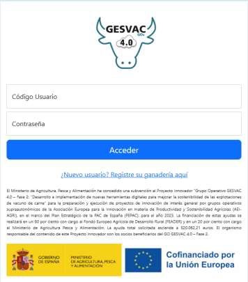 El Proyecto Innovador “Grupo Operativo GESVAC 4.0 – Fase 2: Desarrollo e implementación de nuevas herramientas digitales para mejorar la sostenibilidad de las explotaciones de vacuno de carne” ha puesto en marcha el acceso a la plataforma GESVAC4.0 a los ganaderos independientes que no pertenecen a alguna de las asociaciones del proyecto (Limusina, Charolesa, Blonda de Aquitania y cruces mestizo). Para ello, los ganaderos que deseen integrarse en la plataforma deberán enviar una solicitud a la dirección de correo electrónico ganaderias@gesvac.org, desde la cual se les facilitará un usuario y contraseña para el acceso.